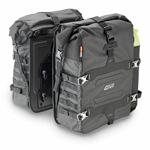 Pair of side bags, 35 + 35 ltr. Designed for Enduro and off-road motorcycles. Quick release UNIFIT from the mounts, with GIVI Security Locks (can be keyed the same as the top-case, trolley base or the toolbox using the SL102, SL103 or SL105 kits).