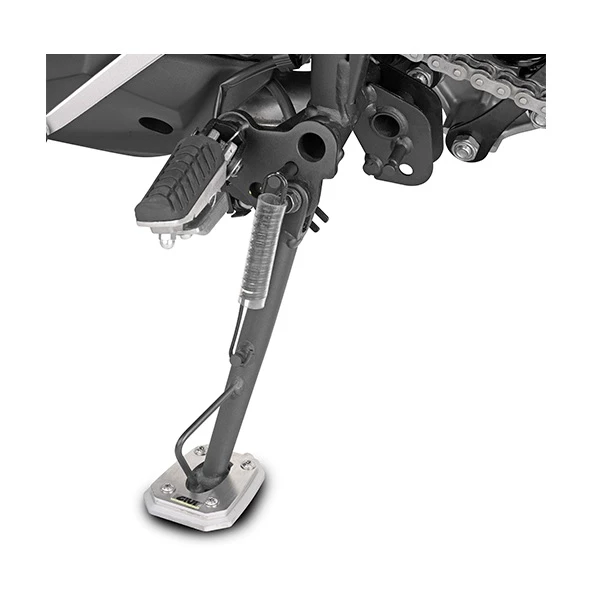 Specific support in aluminium and stainless steel to widen the surface support area of the original side stand.
