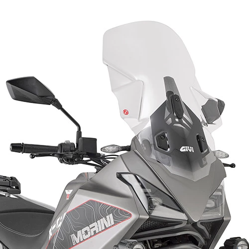 Specific transparent screen 62 x 43 cm (H x W) is mounted in place of the original fairing / 15 cm higher than the original.